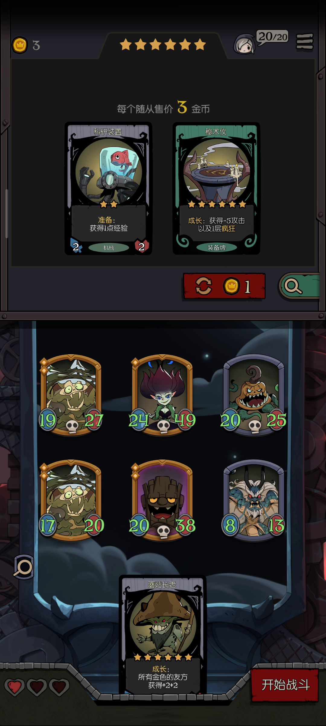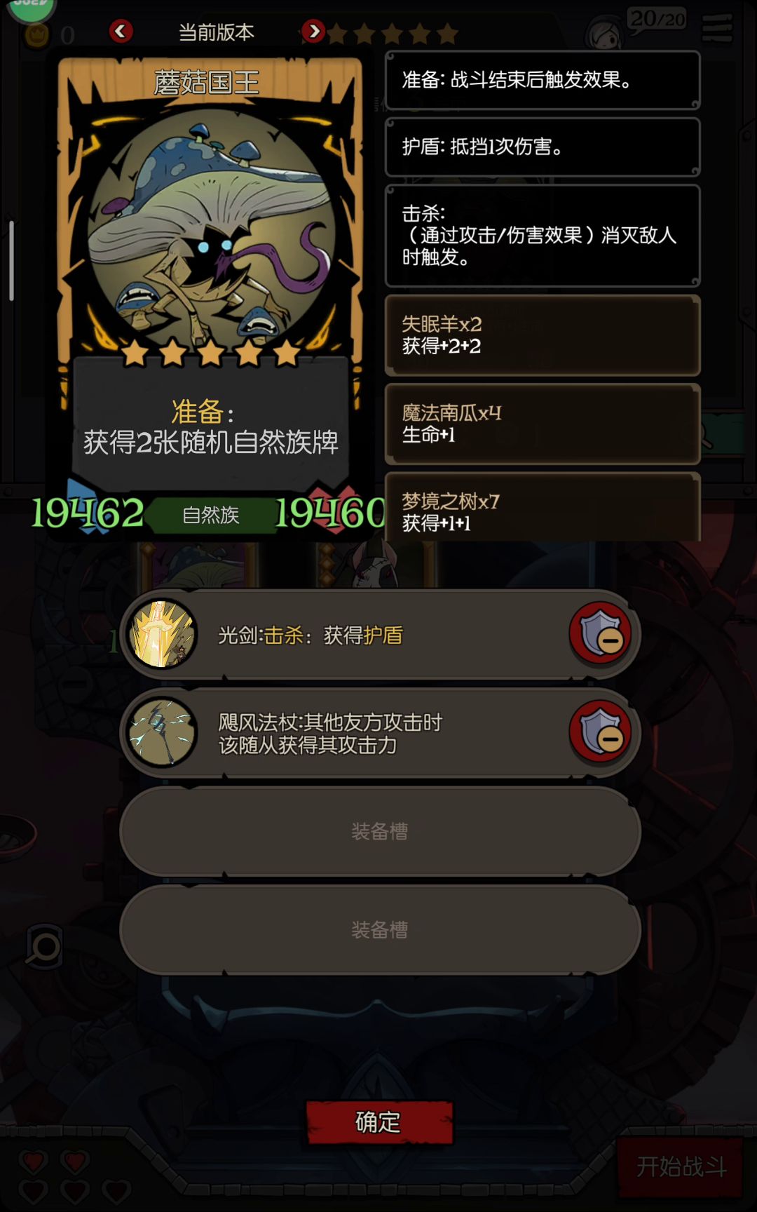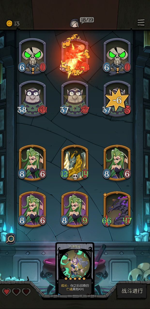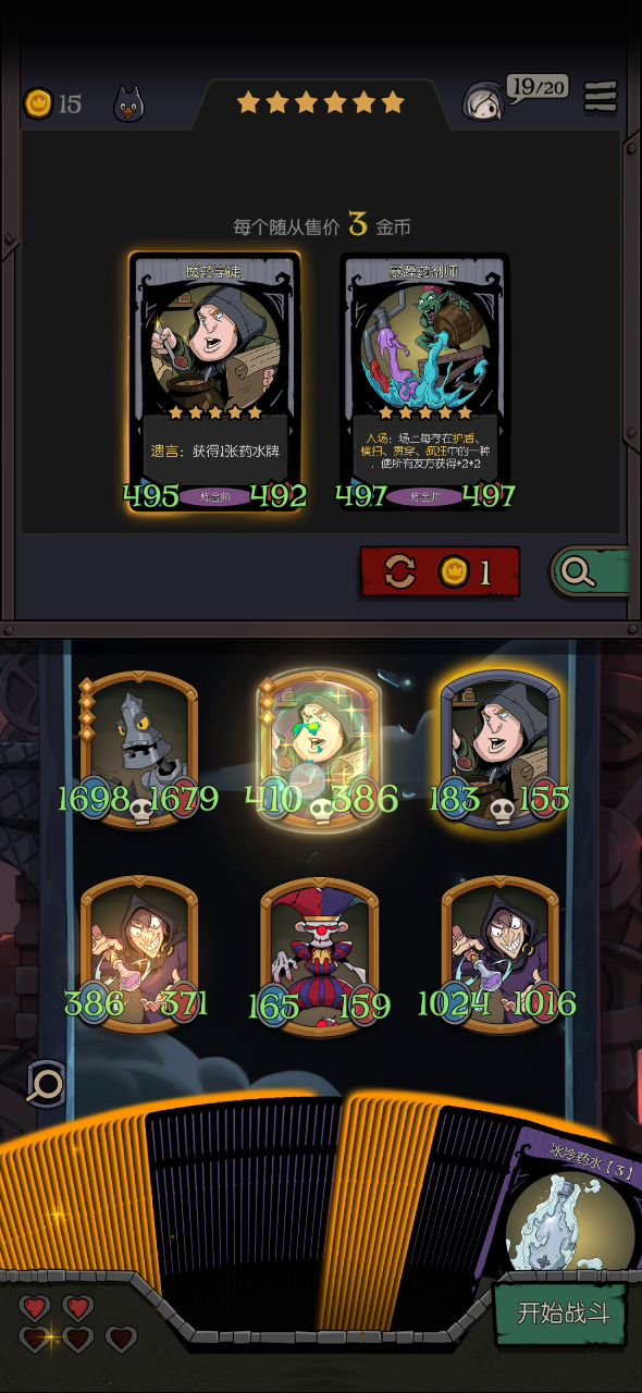 没有不败的牌组,不管你提前设想的多好,对敌刚好是克星,那铁凉了。 这次运气好,其实我这边组合不是非常完美,没怎么刷,随缘,但对被克的牌组,无论对方多么强大,也足够了。 再随缘,必须的搭配也肯定得有,角色不必很强(我这组三星四星都有),但必须互有联通: 思路是围绕击杀摆阵。关键角色灵魂亵渎者(击杀)和献祭者(共享击杀),key牌是自然印记(击杀获属性)和光剑(击杀获盾),还有强化类的角色或装备,我是鬼娃娃(强化),但不知道开始一波送它的技能是不是还存在着,还是随着它走烟消云散,我是假设加强一直在😸。 因为恰巧拥有反射镜(反伤),所以对我这组来说古堡幽灵(属性加倍)也很重要。 最后一关有的boss属性很变态,而且关键不是击杀么,我这组没击杀就没有一切发挥,所以上了幽怨之魂(随机2敌属性减半),而且带上了地雷蜘蛛,这就是开始必送的先驱者。 其实贪睡蝙蝠也很重要,因为前期我没献祭者(6星),也得通关不是。 说这么多,只是提供一个思路,没必要非组成这组牌,而且你不一定在最后遇到的是召唤流。我觉得月圆之夜最有意思的就是随机性,遇到什么,想办法让它组合起来,这样打起来很快乐,实在过不去或行不成阵法就算了,当然牌组再好遇到克星愿赌服输。如果开始就一门心思非要成什么固定形状,会很痛苦,失去了游戏的快乐。 莫执着。😉