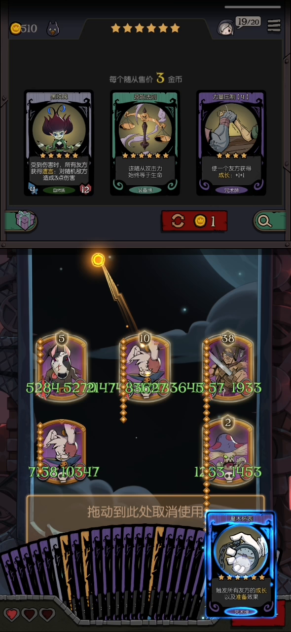 电表倒转让什么属性叠加之类的直接没了上限,也没有必要追求上限了,还有好几只兔子在这,钱还有。 于是等属性叠加上来之后,再给个火把和先手触发遗言的装备就可以完成机关枪了。 但是这个玩法真的太累了,好不容易才把手牌卖完……