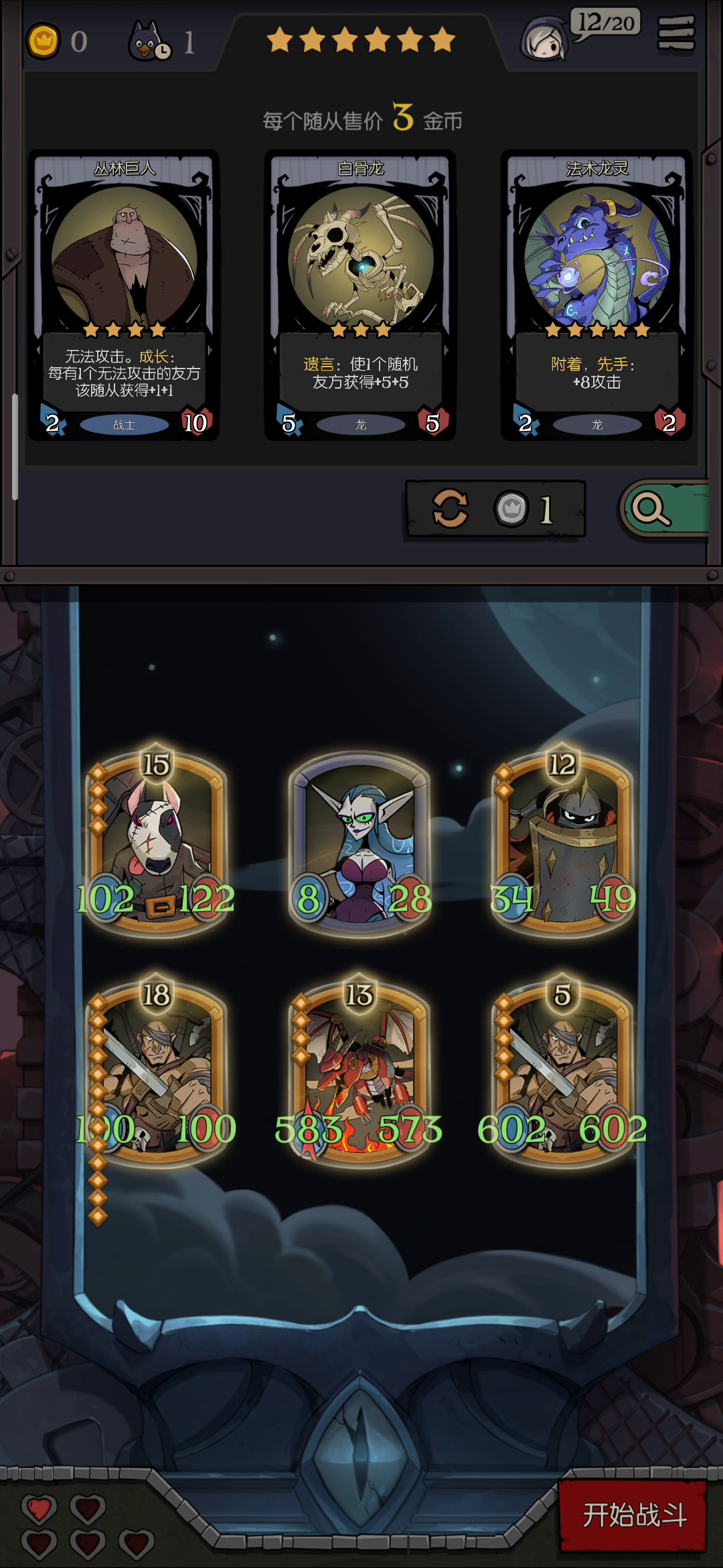 没买鬼和龙,平民通关难度五,其实自走棋也得看运气,系统给你什么牌你就要考虑走什么阵容。(个人推荐战士、机械、植物,野兽感觉不好过渡) 战士:守卫血高后期也可以用(伐木工不走护盾流略显乏力); 植物:魔法树丛、恐怖南瓜泉水之灵成长三件套(精灵之光用了一次就可以弃了,是一次性卡牌),让你6、7回合上百穴(而且可以搭配成长装备牌使用,我这是出的比较晚,阵容打怪还是有点吃力); 机械:看情况,我主要走两种:暴兵流、遗言流。 暴兵流:机器人+机械套娃,我死了还有千千万万个我😎有点夸张。不过,机械套娃一个,金色机器人死了召唤两个,两个机器人就是四个。 遗言流:靠遗言打伤害给队友叠buff,我这次抽到改装师+机械兔就可以死后对敌人造成伤害。 总之还是一句话抽到什么决定走什么阵容就选择性去发展,不要中途换大批阵容。事件选择优先考虑利益最大化。
