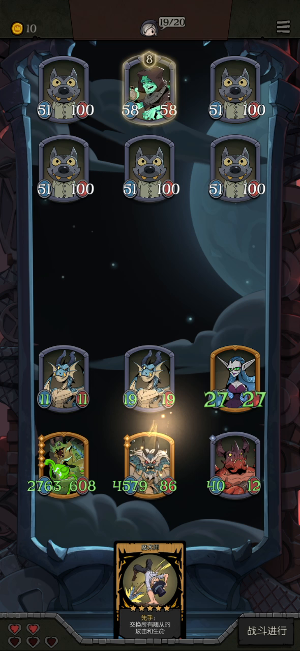 #月之夜自走棋 1,2,4,5号位必带,3是打酱油的,6可有可无。 核心是3星的幽龙,全力养,只要保证幽龙第一次出手能带走一个,必赢。 武器大师优先带成长装备,这样分享给幽龙后两个都一起涨属性。