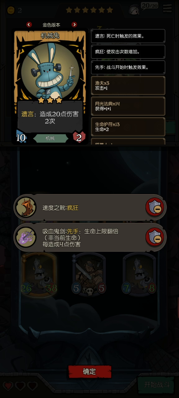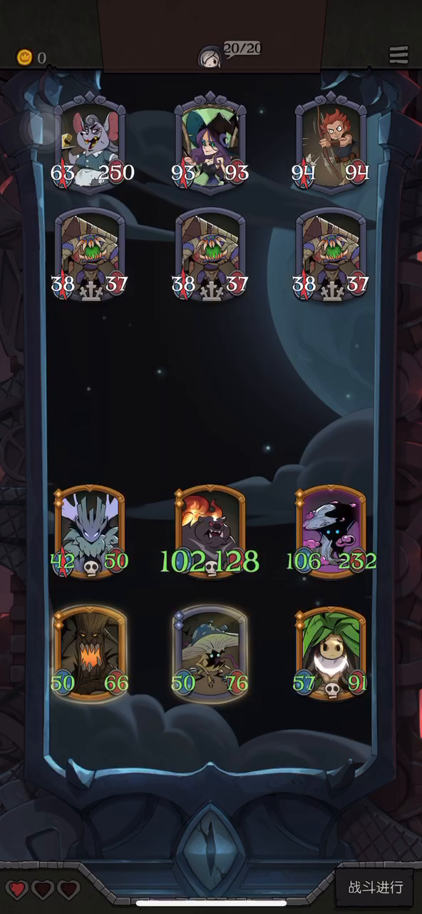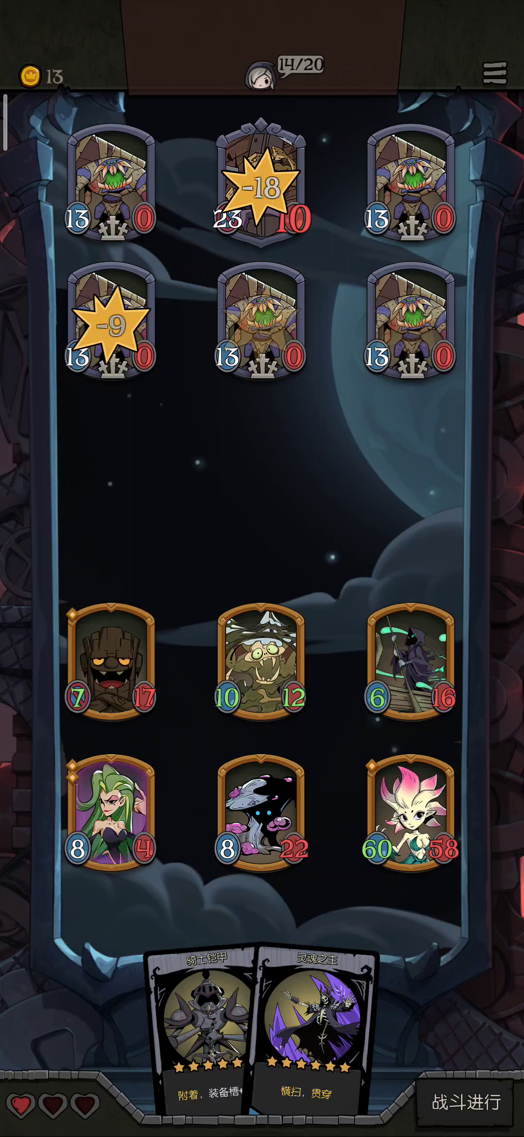 挺靠运气的,我本来是想完成12回合前升6星的成就,结果10回合过不去,只好花了钱,11回合没升到6星。早点拿到了蘑菇国王,运气好,能刷到高星牌,然后又拿到梦境之树,这家伙配合蘑菇国王真好用,一个免费送,一个卖了全阵容永久+2+2。