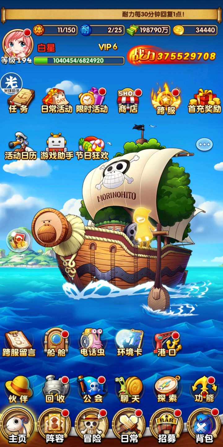 一个月金币收入8,9万,充钱是不可能的。今天附魔更新等级,胖虎估计战斗力可以破1.1亿了。目前pvp只有平民打打,多红船大佬可以越1亿打我,船炮效果恶心的不行(金钱的力量吧)游戏能不能出一个免费红船让平民白嫖爽一下花半年,一年得到也行啊(๑•́ωก๑)
