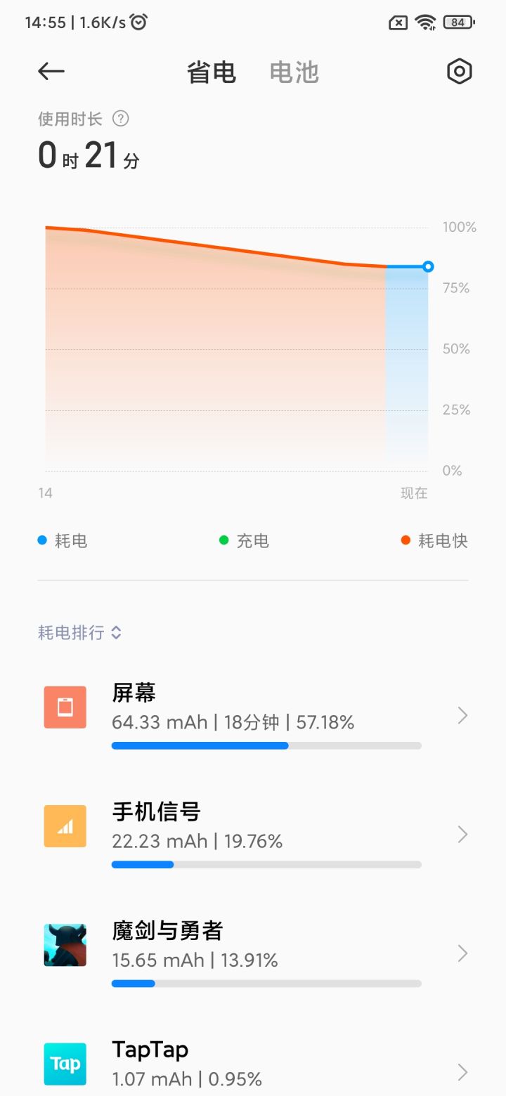 玩起来手机发热,耗电量特别大,玩的时间久了的话,手机信号耗电量基本排第一,我这个手机连卡都没有。