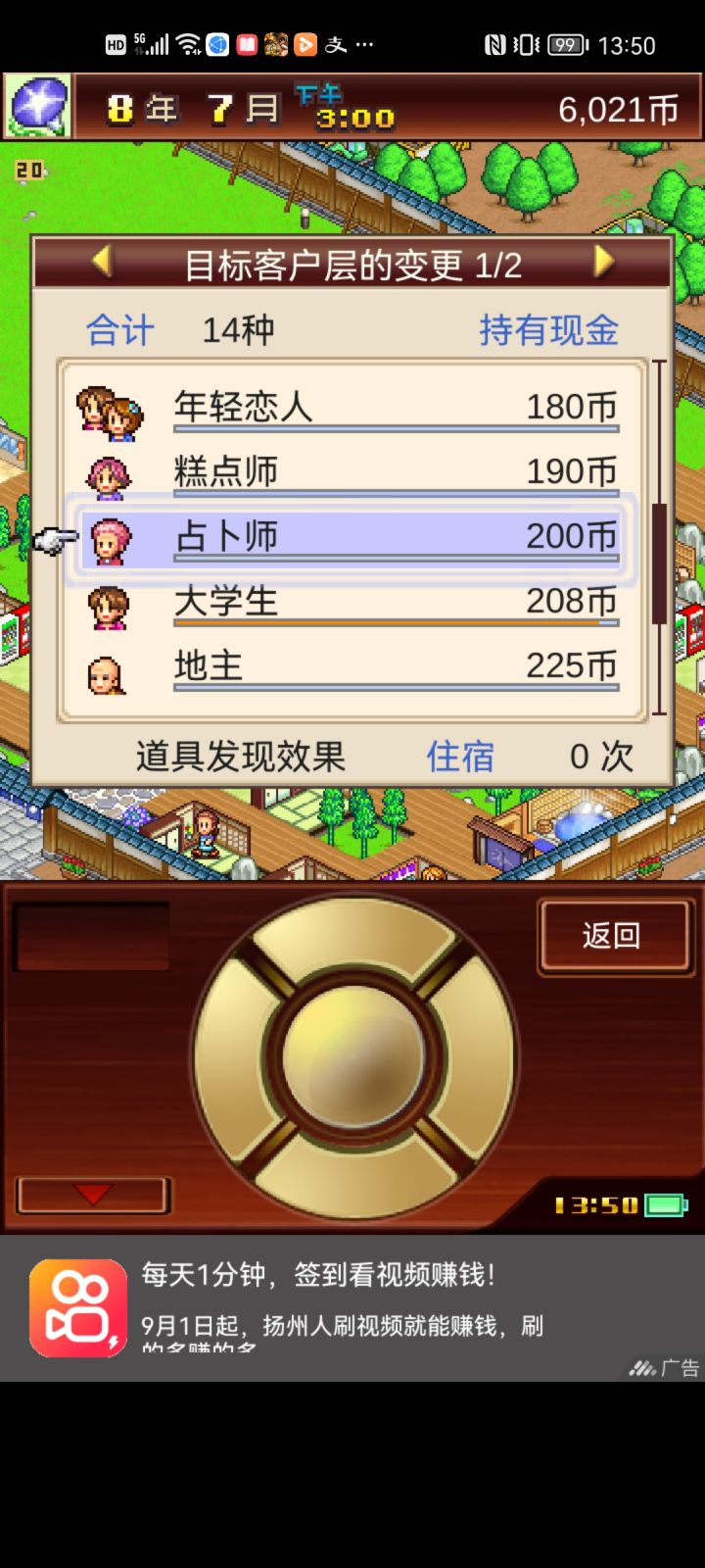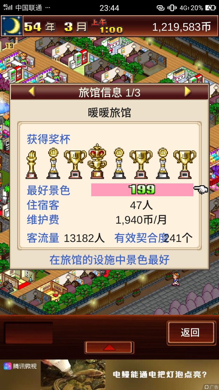 玩了60多年,差不多都搞完了,看了看论坛的帖子,发现有很多地方大家都模棱两可,所以在这里说一下,如果有不同见解,请指点。1.道具的使用强化建筑,是强化所有的同一种建筑,并不只是强化这一间房子,所以在使用道具强化建筑的时候越早越好,当然除了人气种子跟费用种子外,别的道具是有强化极限的,一般使用3次左右作用就为0了,争取全都强满。2.招待特殊客人,很多萌新不知道怎么把满意度拉满,其实很简单,客人每