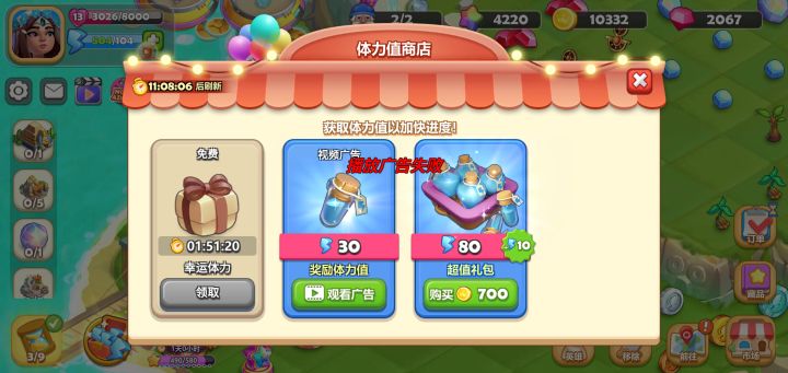 几乎没有能正常使用的广告,90%的广告看完关闭不了,9%看完自动下载还不给奖励,只有1%能正常,逼迫玩家不看广告白嫖,也是另一种层面上的良心游戏了。