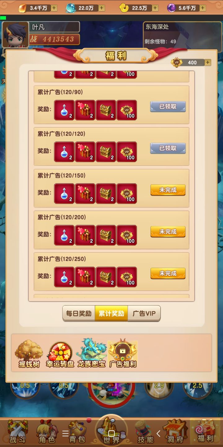 挂机要看广告 摇钱树要看广告 五十多秒广告 20秒时候能跳过 虽然作者要恰饭 但是这未免有把猪养肥了再杀的意思
