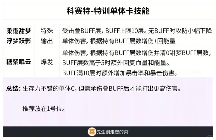 P2看技能描述 总结:生存力不错的单体C,但需承伤叠BUFF后才能打出更高伤害。 推荐放在1号位。#维斯塔的餐桌攻略 #维斯塔的餐桌
