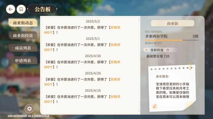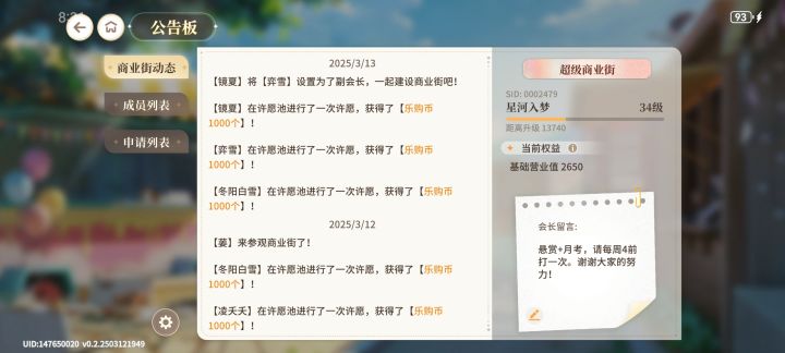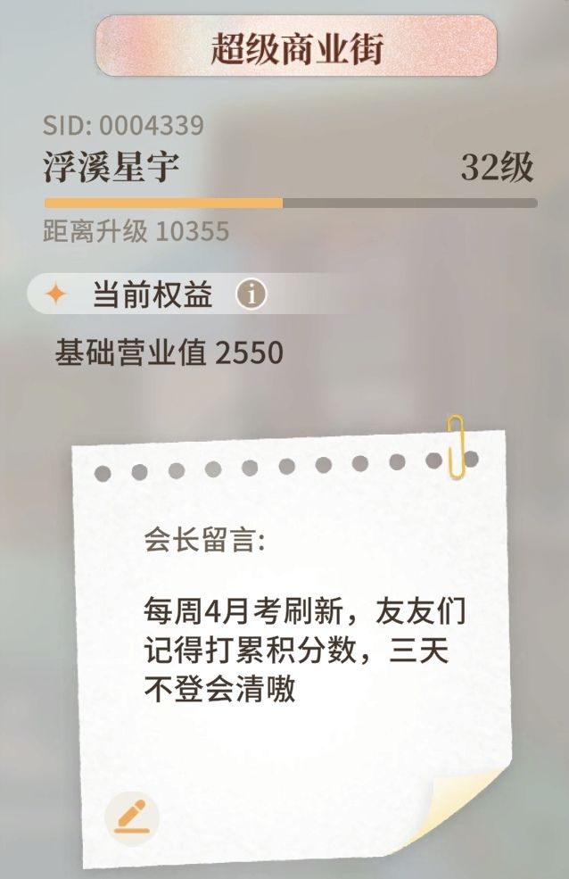 SID:0002479星河如梦月考排名前20,34级商业街2个位置,要求每周打月考一次,周日清一周未上线。