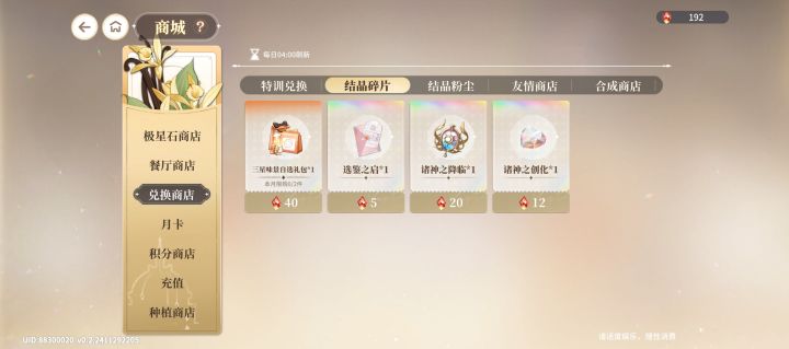 我裂开了哇,原先这里有一个180个结晶换一张“一见如故”的,我寻思是一个月换一次,想换别的卡的,他怎么就没了啊