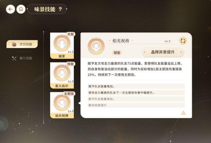 今天打困难关的时候姐姐疯狂给赫维回能,点开面板一看赫维攻击比朱利奥的多了这么多,我还冥思苦想了好一会怎么会变成这样,突然想到因为个人偏爱问题我把名厨培训都给赫维了, 导致赫维成了我全队攻击最高的角色,救命大家千万别和我一样