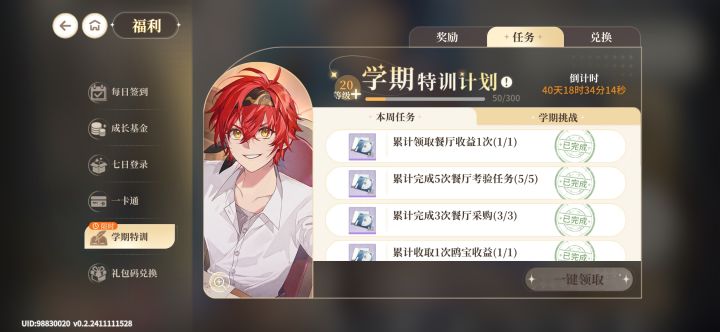今天周一,他显示周经验满了,服了……