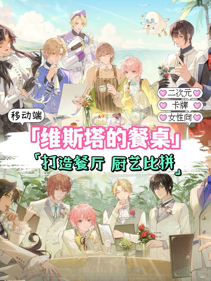 🎮游戏名🔺维斯塔的餐桌🎮游戏类型🔺女性向/二次元/卡牌🎮游戏状态🔺预约中(点击最下方游戏标签右侧“预约”,即可在游戏上线第一时间收到通知(●v●)📣)——✨入学顶尖烹饪学院,学习烹饪,朝着开餐厅的梦想前进!💕带有轻度的餐厅经营💕主剧情和卡牌养成💕菜品画的特别精致💕两种卡牌立绘可以切换💕重点是,男女角色皆可攻略!小孩子才做选择,我全都要啦~——📣记得点击下方游戏标签右侧的“预约