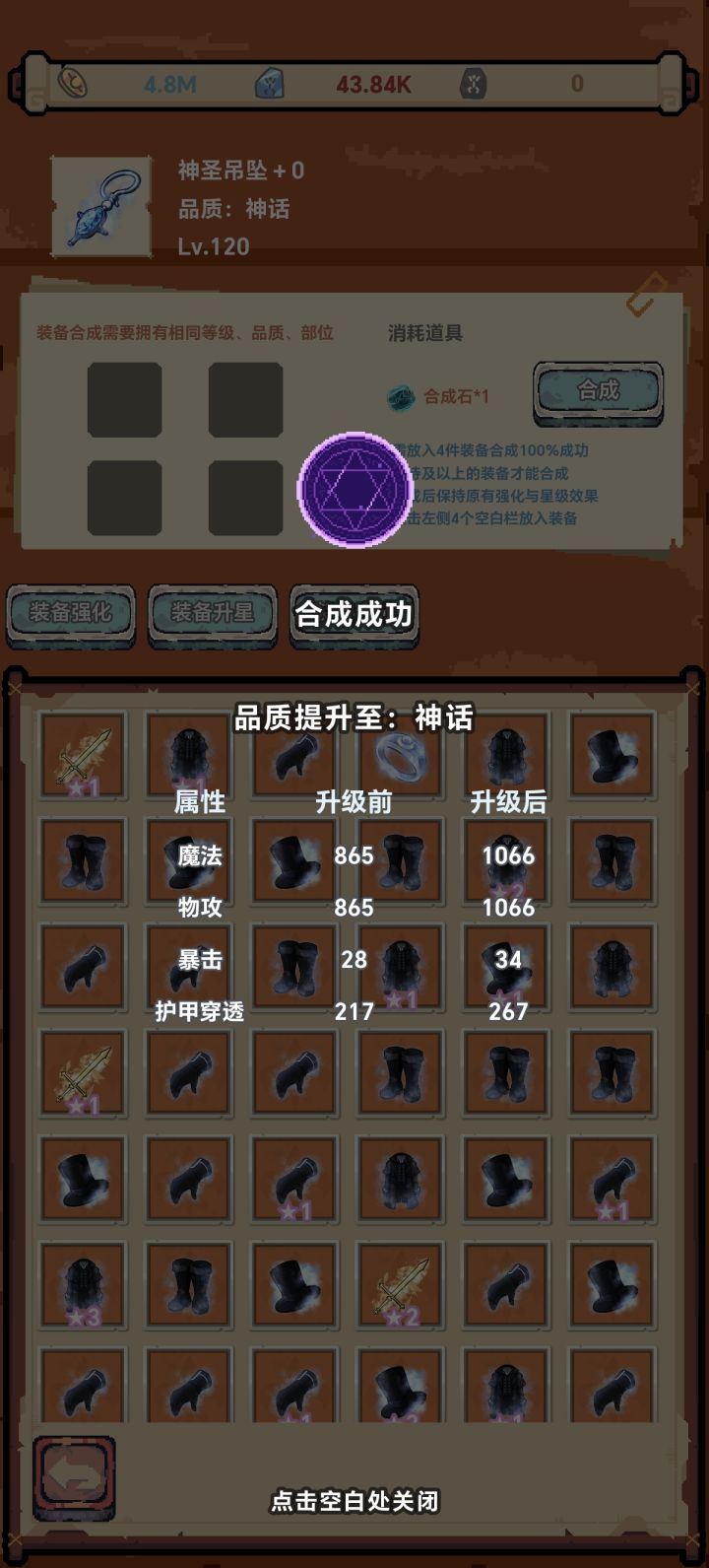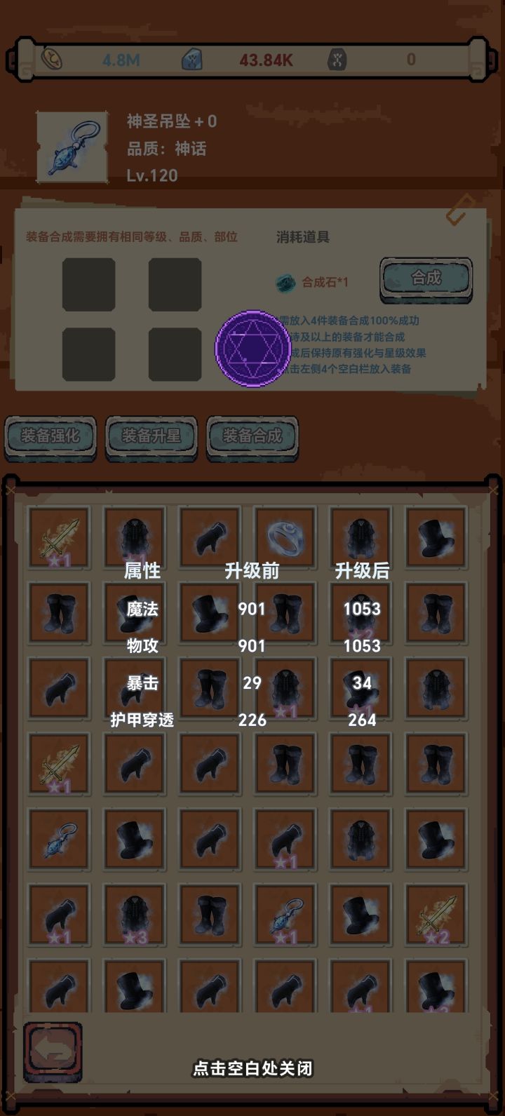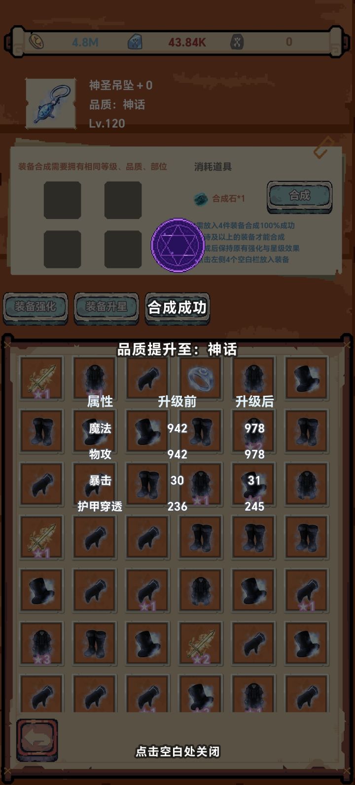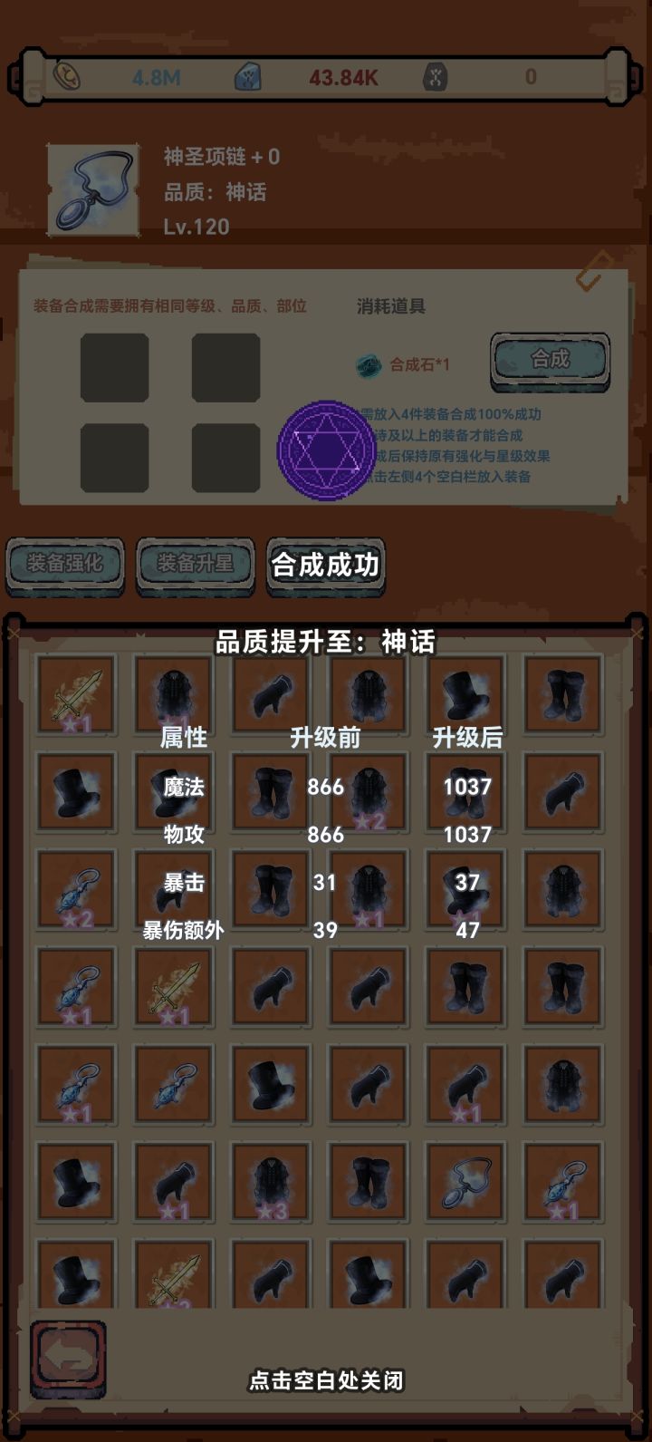 一些个人玩法,看看就行首先武器,头盔,护甲,这三个单独列出来,因为他们有特殊加成,武器吸血,头盔防御加成,护甲生命加成,这三个,个人建议用评分最高的合成,虽然合成以后也是随机加的数值,但是基础属性大的话,变成高数值的可能性也大最后,剩下的部位,优先选择初始升星好的升,比如初始两星,加的生命,防御,元素加成(元素流)的这种,两条的毕竟的少数,我的玩法就是找3-5个一条的(5个正好最后升上古),一