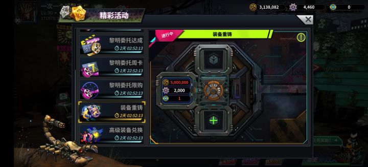 第一次注意转盘任务和黎明任务。转盘要六百普通币能拿红唇,高级币一个顶三个。黎明要三万积分能拿红唇。装备重铸的纽扣在公会商店高级兑换里有,很贵,可能要先拿专武后在考虑重铸,不知道装备能重铸几次,也不知道升红后重铸属性是否保留。