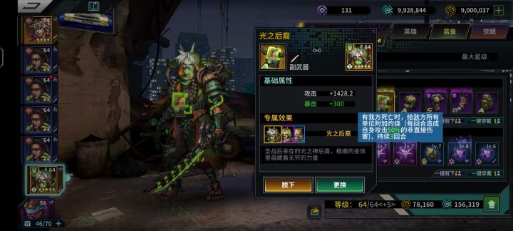 献祭流主要输出来原于哈儿的副武器的效果,已方单位死亡就会给敌方全体挂上一层燃烧效果这个效果伤害非常的高。用蛇哥的好处在于加攻击前期推图快后期死得快完美触发哈儿副武