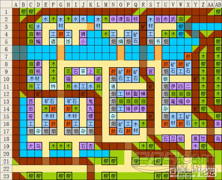 最完美无交错的区块分割布局(2022年3月31号更新)这个布局的特性就是一厂一铺,把忍者村的每块区图都使用上还能获取不错的月入(附赠全毕业忍者配装思路图)