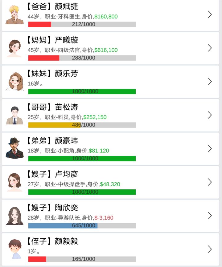 这个游戏玩着有点累,唯一让我快乐的就是那个爸爸妈妈去世的时候,可以继承的遗产,然后我又很快花完了,没活过40岁