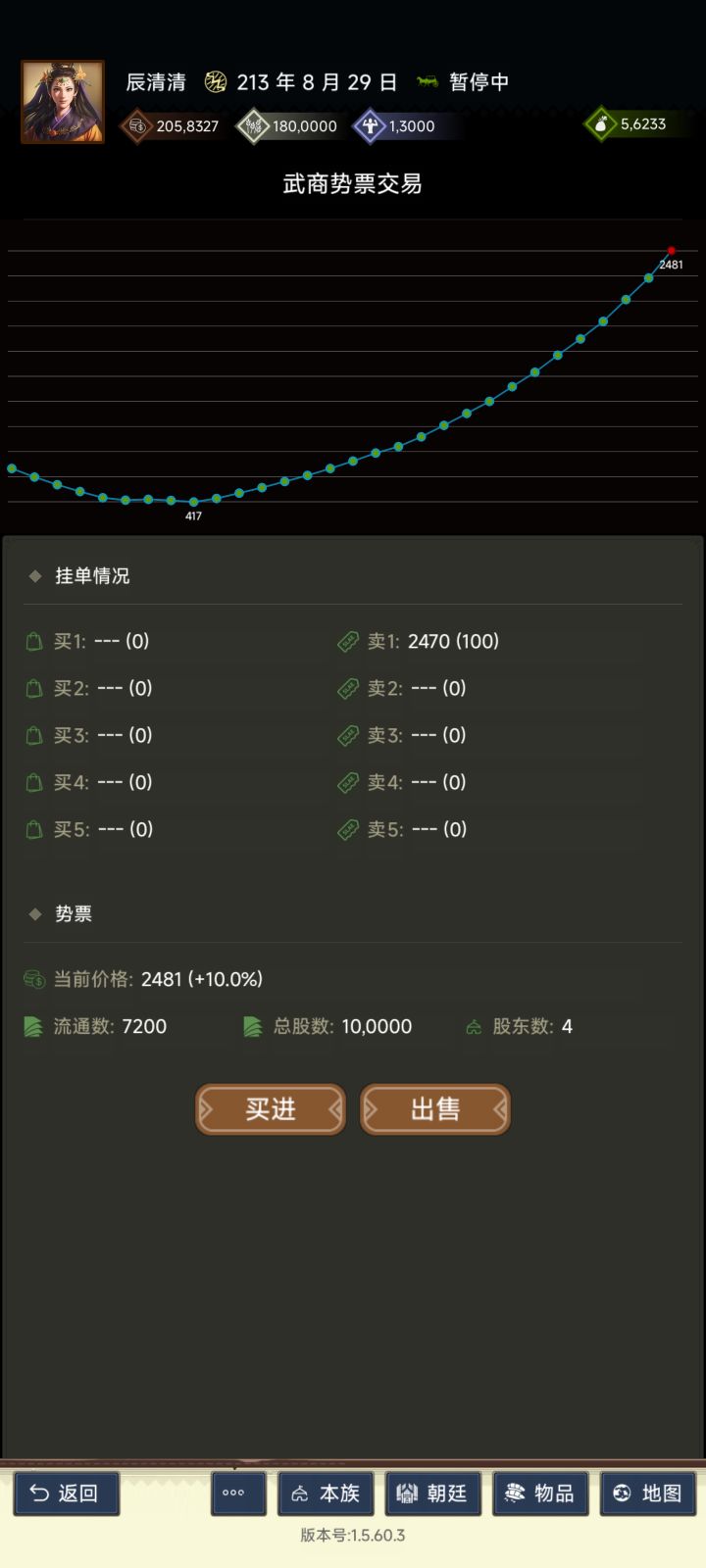 实践是检验真理的唯一标准,章太守黑子说话。根据每年9.5%,仅增长一次的情况下,减去前期发育时间,大概能吃23个涨停,这样算下来如果士族月收入达到115000,应该可以通过势票获得一亿资产,这在某些区6+级地双倍产出的情况下是很简单的。如果有时间去做战役的分析,截止前根据赔率去平铺,吃点报名费,那就是额外的钱。