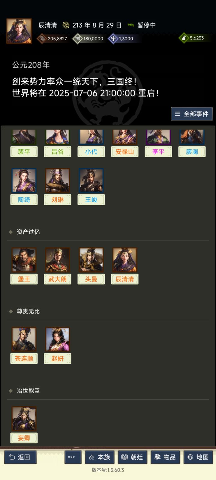 大家好,我是北平区的剑来青锋。看到许多新人对游戏上手难,决定写一篇攻略。希望能帮到真正想玩的朋友们。一,概论 此游戏是个赛季制的。开始日期为180年,1天为一年。每天9点到21点为游戏时间。宵禁了只能拜访武将和整理物品。到208年决战。胜的势力占领长安或长安洛阳五年,势力主称帝,赛季结束。如果双方僵持,220自动结束,进入下一赛季。二,捏人 新人捏人犯错误最大的有三:看到头像右上角的数字,