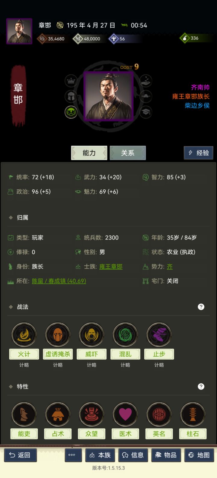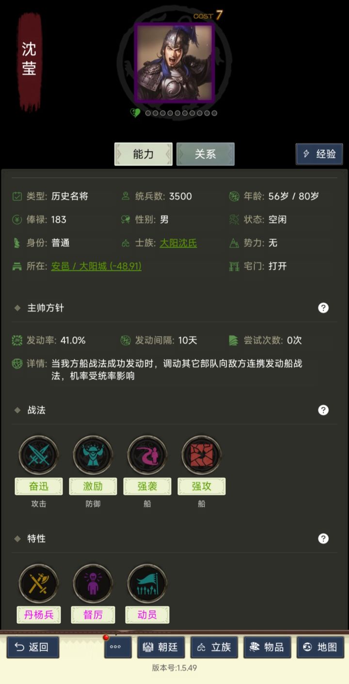 萌新百问【老油条别看】【1-5】 - TapTap基础:每天晚上9点到早上9点宵禁,相当于游戏暂停游戏中每两分钟为一天,壮丁结算为下个月第一天,金钱粮食每天等比例结算。士族的钱,在你当族长之前的只能用来征兵,发工资,执政,你当族长之后挣的钱才能随便花。一.捏人新手一般是单号,推荐刷高武力高统率将武力统率双80+最佳,75以上也可以接受特性 :豪杰,动员,扫荡,果敢,守纪等正面特性,切