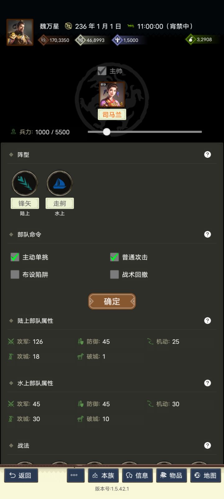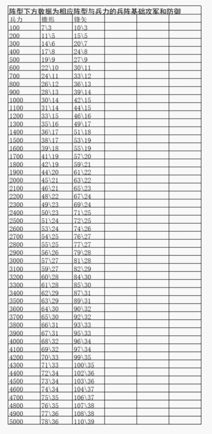 众所周知,部队属性受阵型、兵力、统率、士气四方面影响,那这四个方面是怎么影响部队属性的呢?今天我们聊聊这四个方面具体是如何影响部队属性的。首先每个阵型都有攻军、防御、机动、攻城、破城五大属性,且不同阵型都有其对应的基础值,如锋矢攻军为42,锥形攻军为30(襄阳玩家,举襄阳的例子,官服有需要我去统计。)然后我们要知道,陆上阵型机动固定,水上阵型机动、攻城、破城固定,都不受上方四项影响。接下来我