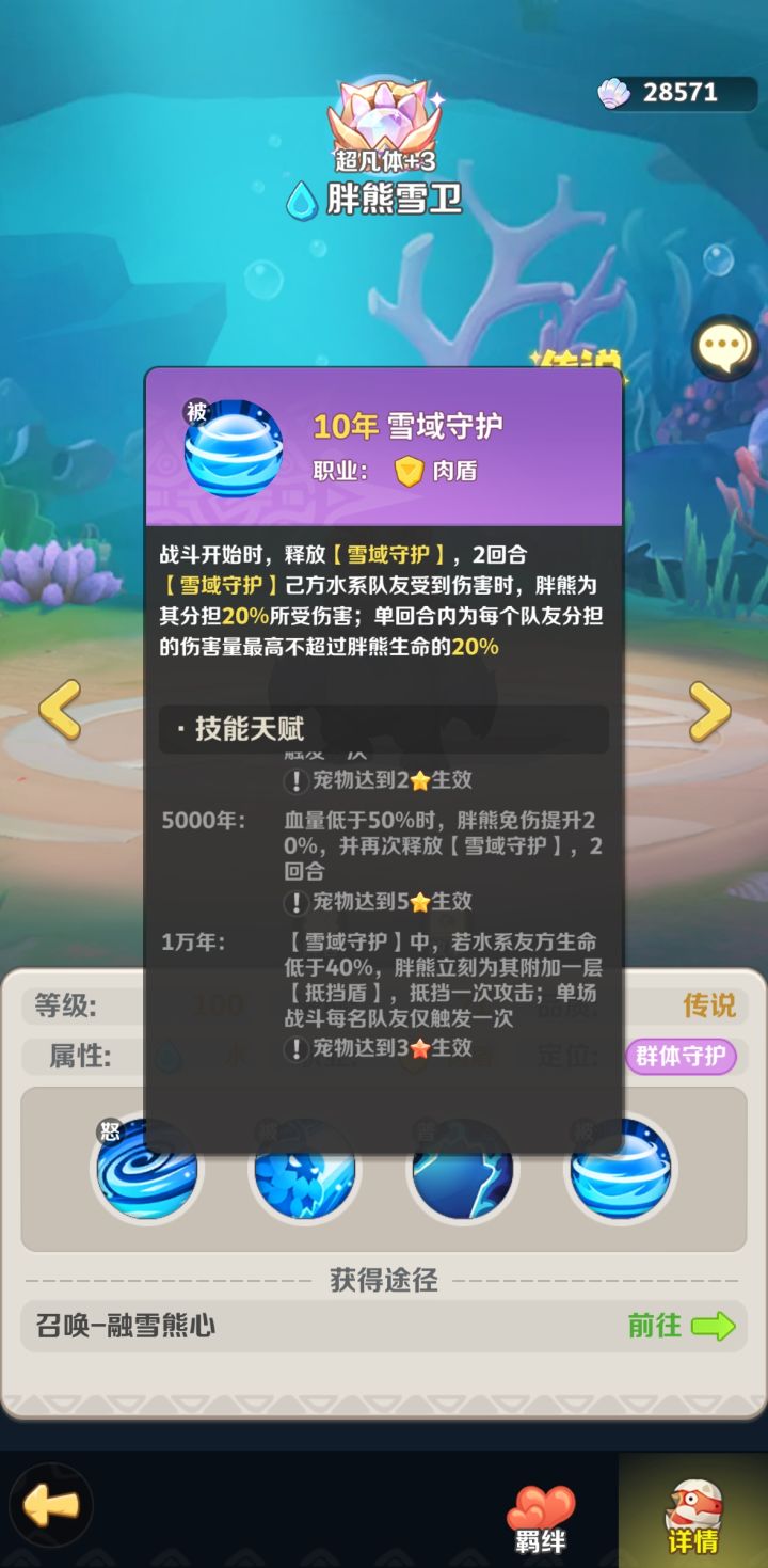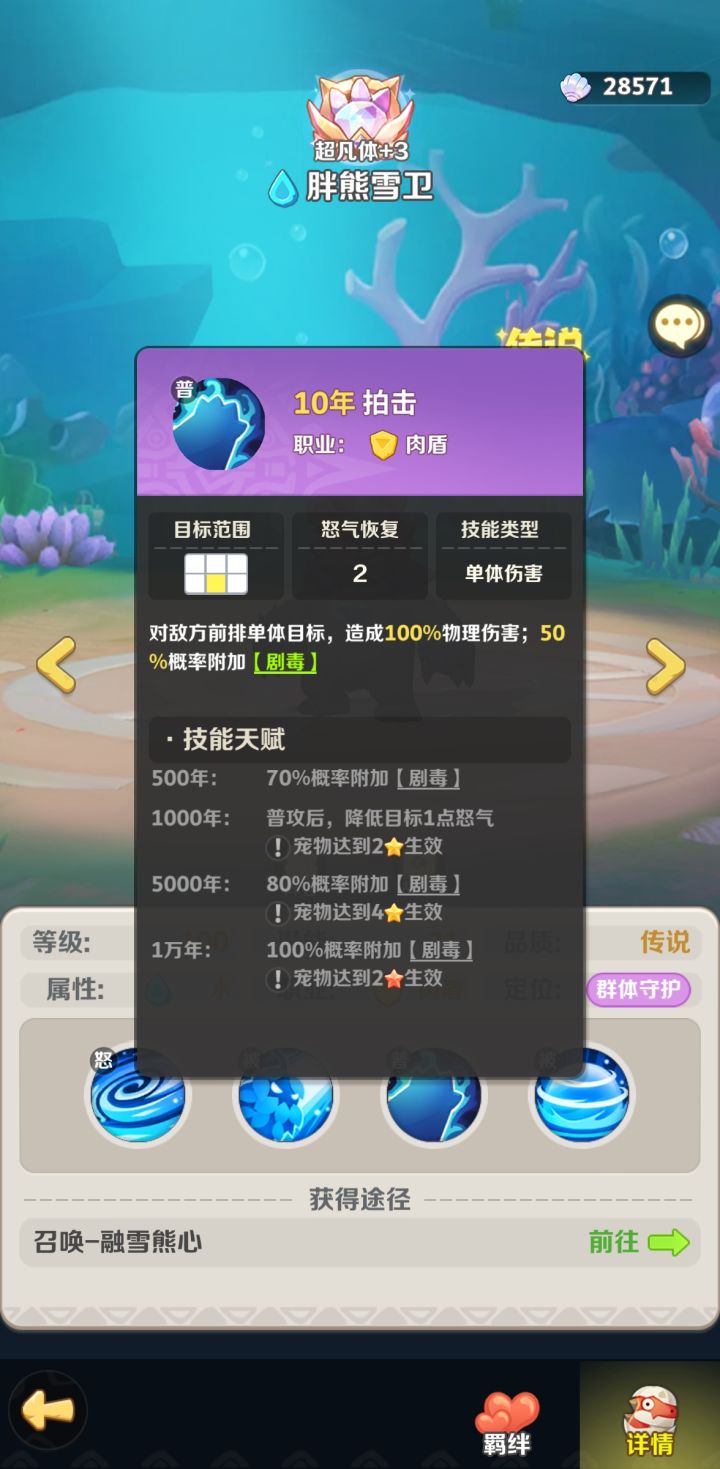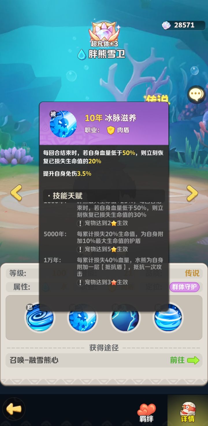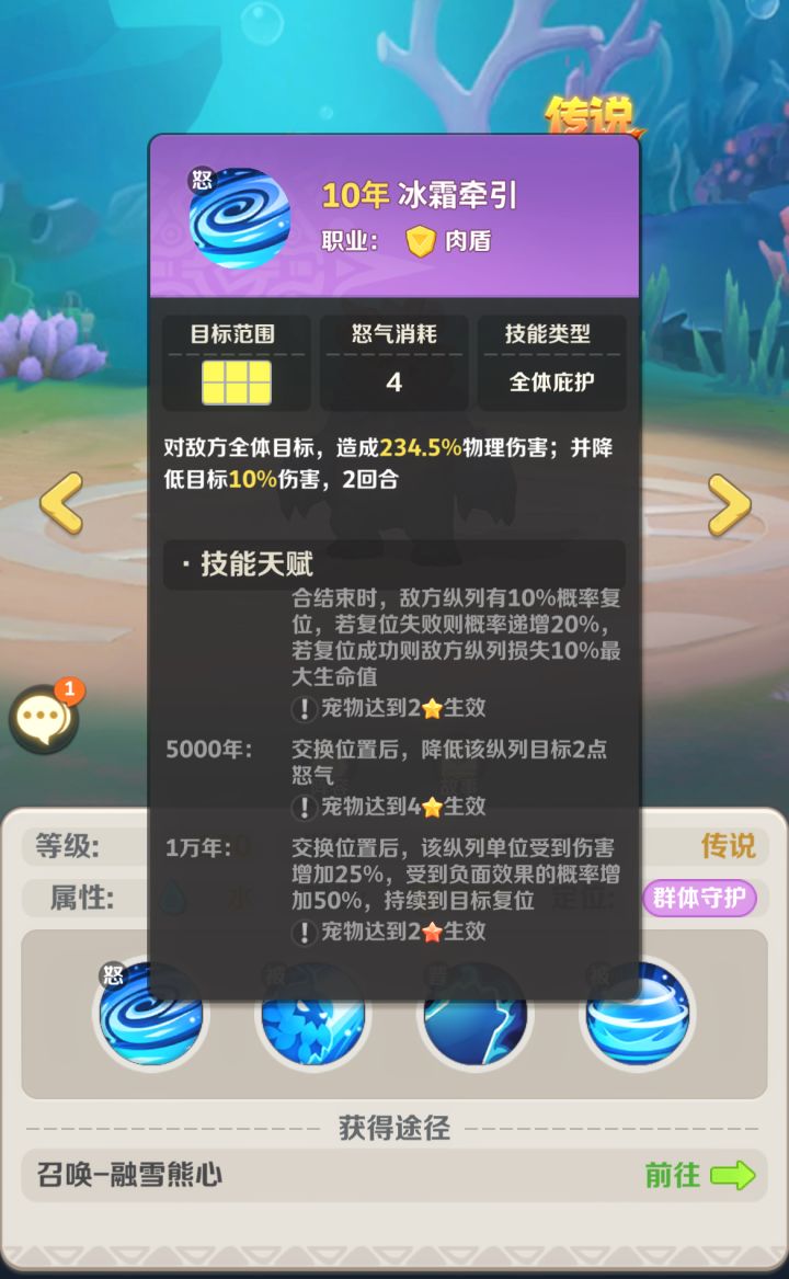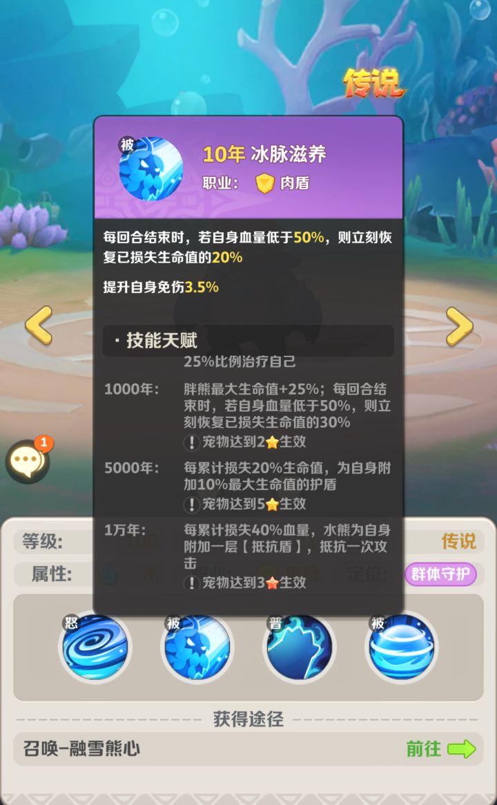 胖熊雪卫技能优缺点解析《冰霜牵引》【优点】全局伤害,打乱对方出手顺序,增加对方纵裂受到伤害,比如应该是先裂甲主C再攻击,先点火,主C再放技能,这样可以起到先发制人效果,能让敌方阵容至少丧失2回合的伤害。【缺点】基本上只有PK有用,PVE活动感觉用处不大,且PK打架对方可以再打前调整队伍,所以并不是太友好。《冰脉滋养》【优点】强化自生续命能力,万能龙骨3星还能附加一层抵抗盾,抵挡一次攻