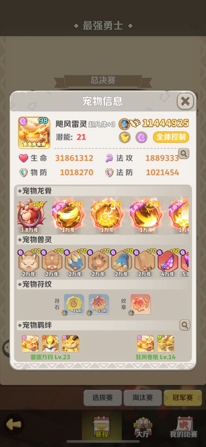 风系新宠 - 飓风雷灵(养成建议)【小名】:雷灵、雷弟、雷震子【抽蛋难度】:★★★★☆【宠物强度】:★★★★★【特点】:风系新宠,全体控制,控制流宠物。【下位替代】:无替代宠物。【定位】:建议投入在风系队伍使用。【兽灵】:冰河世纪4件+魅惑猫后2件。【龙骨】:生命百分比优先、防御百分比/抗暴其次。【5000龙骨优先顺序】︰闪电龙卷-灵力掌控-雷罚制裁-狂风。【符石特效】:固守+