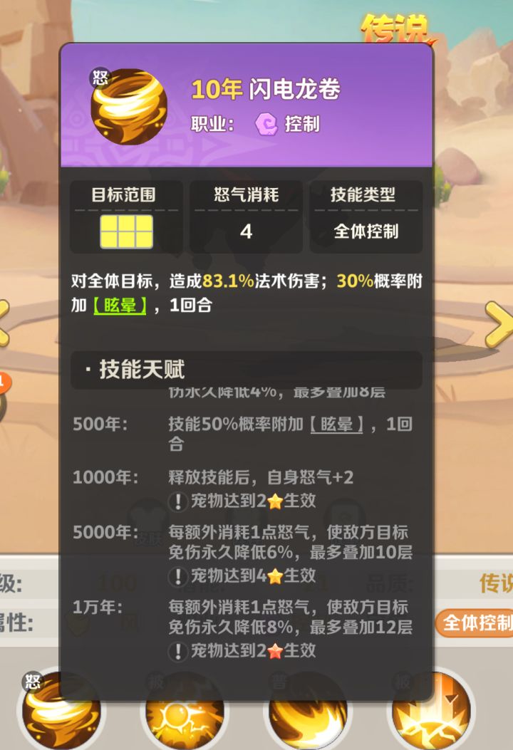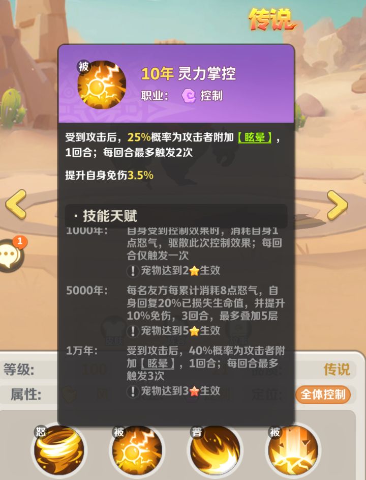 雷灵和贝龙蝎子一样,作为控制职业,他的强度可以从控制能力、抗控能力和生存能力三个方面来看。首先是控制能力,它具有硬控(眩晕)和软控(转怒降伤),它们都可以有效降低敌方输出节奏,在pvp中很好用;另外在悬赏中,眩晕可以省去小怪出手动画,从而延长回合数来增加伤害总量。然后是抗控能力,雷灵可以消耗怒气来驱散控制,这保证了自身的出手。也是因为这一点,雷灵在他系队伍中,可能会面临怒气不够的局面,放不出技