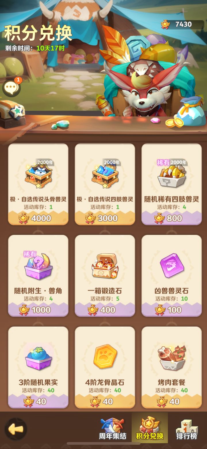 壹路同行 -周年集结积分兑换,换哪些性价比最高?关于周年集结的积分兑换,性价比最高的优先顺序,为 【自选宠物专属龙骨/20000积分】→【极品神器碎片/12000积分】→【传说万能碎片/20000积分】→【圣兽之灵/2000积分】→【极品随机碎片/5000积分】,若为前中期玩家,比较缺宠物的状况下,可以将【传说万能碎片/20000积分】排第2选择。很多人会问,新兽灵【极‧自选传说头骨/四肢
