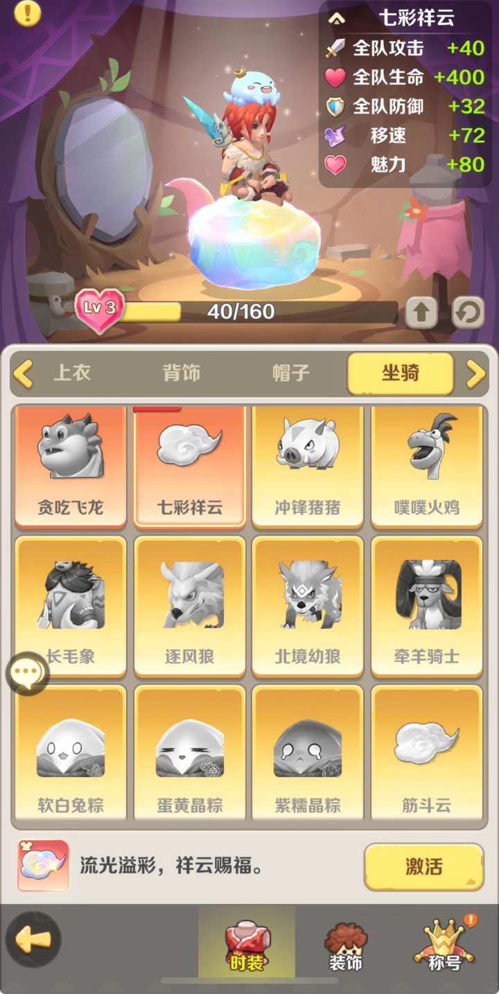这部份我建议是可以将自己所拥有的宠物,都可以当做坐骑来骑,并且可以为自己的坐骑打扮,可以透过活动去获得坐骑的穿着服装、挂式、吊饰等等。再或者,可以开启宠物跟随系统,有宠物跟随模式,界面上也更丰富灵动。