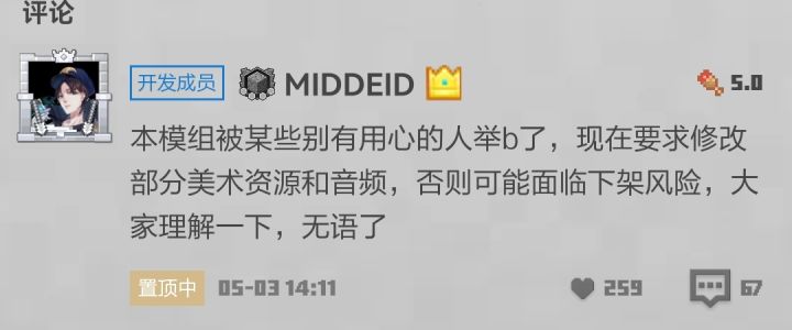 建议出个买了模组才可以举报,免得被某些没钱眼红的小鬼举报,现在改的跟坨s一样😅