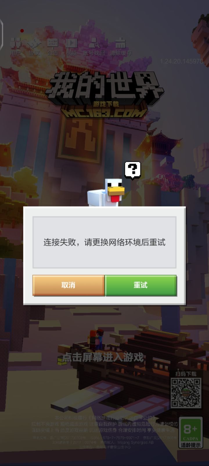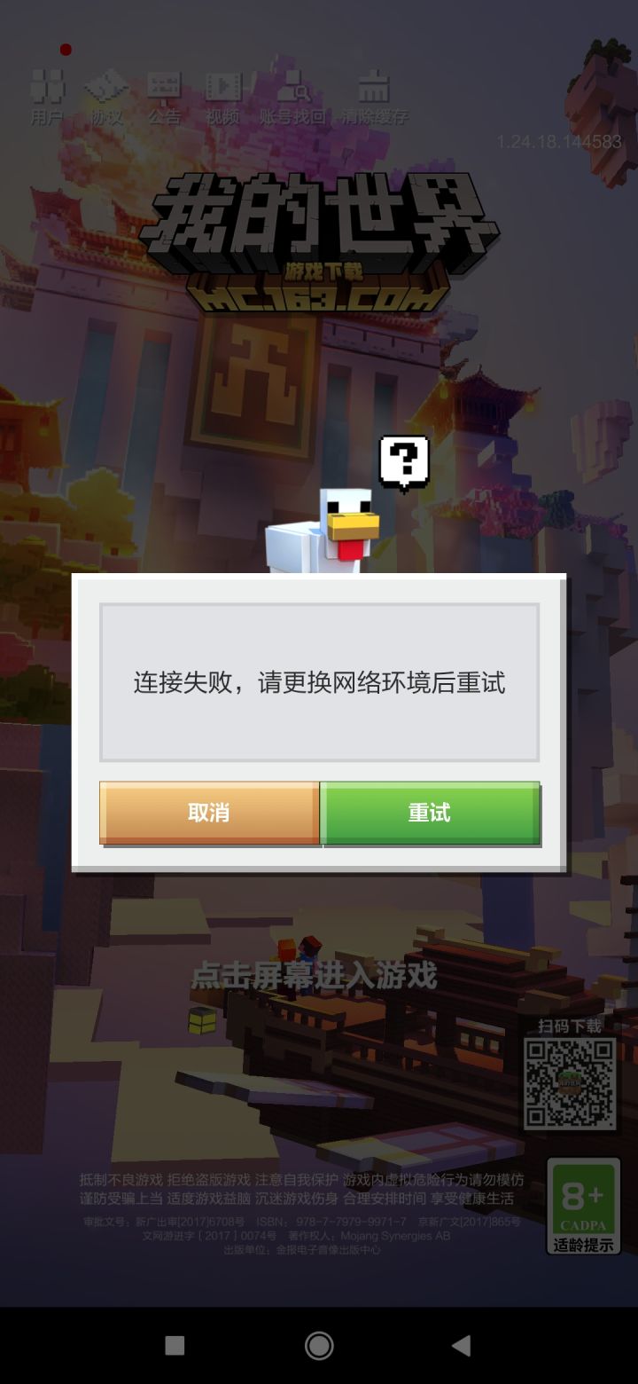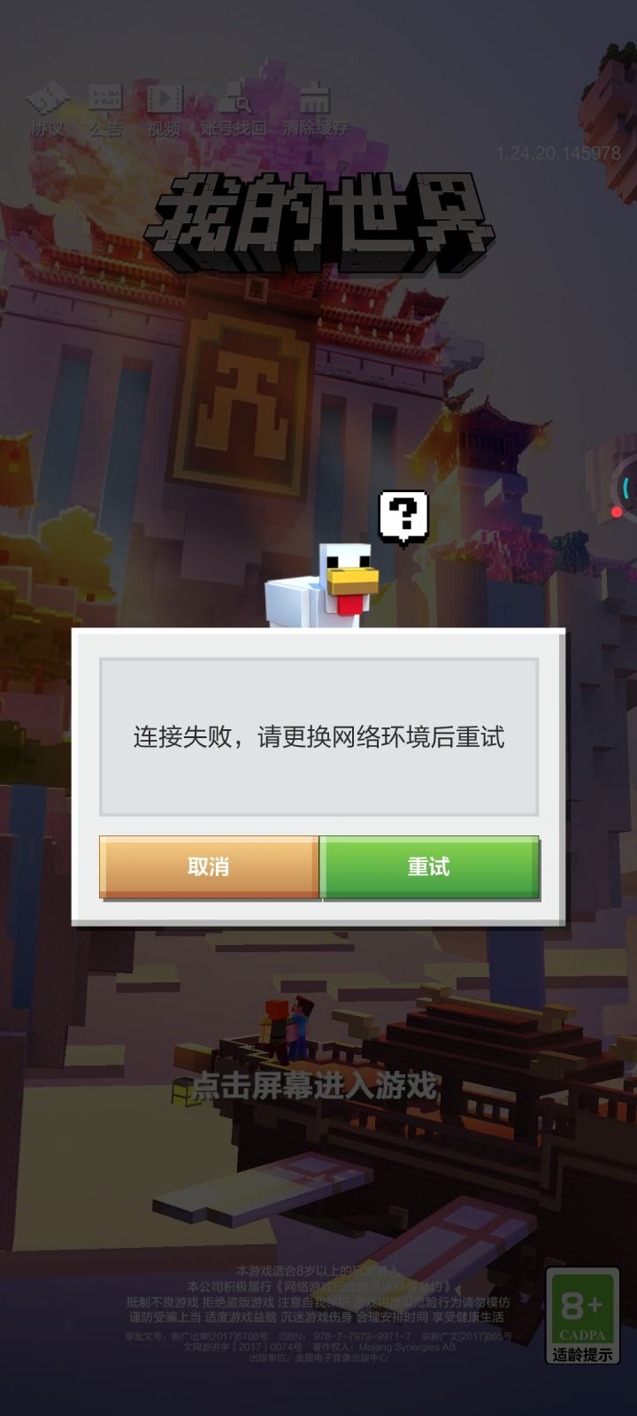 明明网络好好的,其他游戏都可以玩小说可以看,电视剧可以追都可以为啥一直进不去我不理解🙏