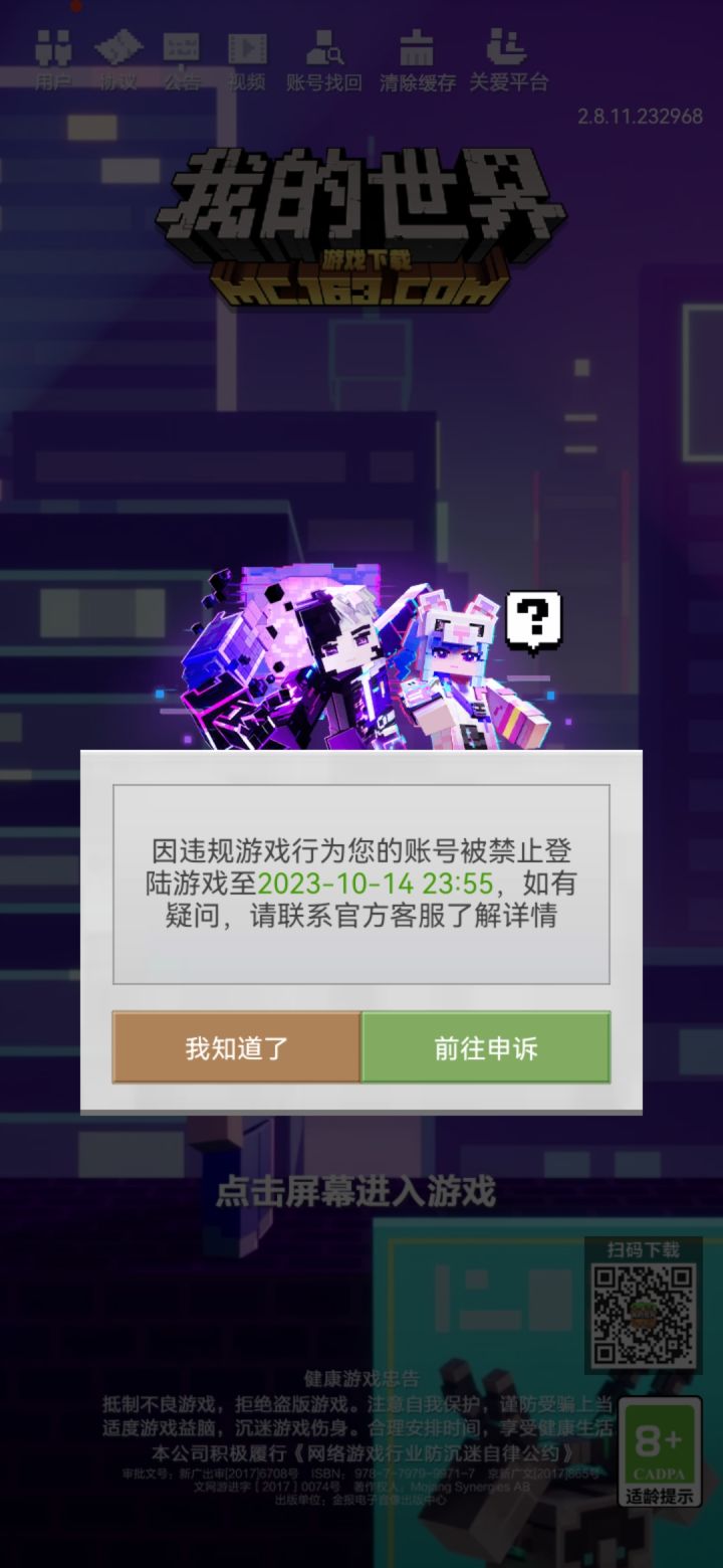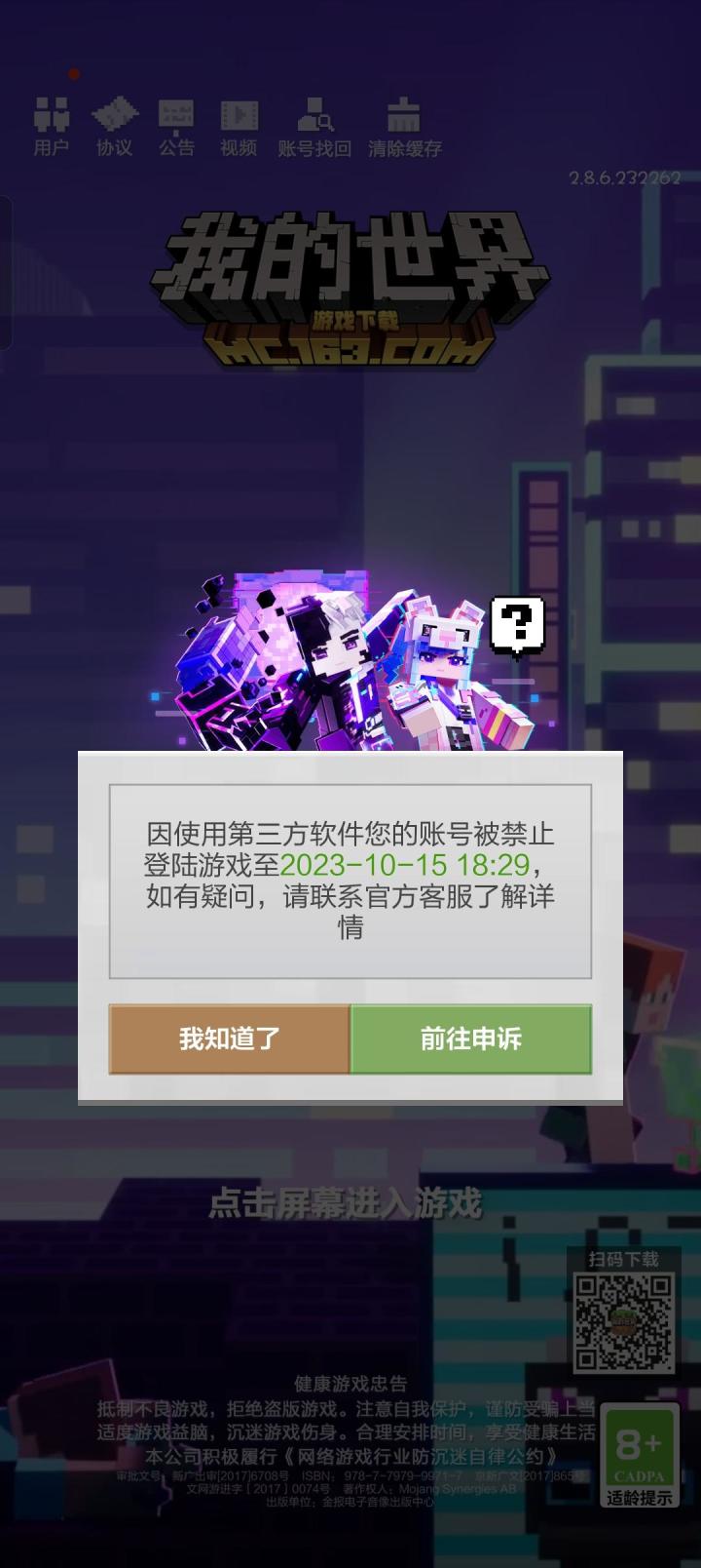 本来刚进去想去平常经常去的服务器玩的,然后系统提示我版本过久,我就来TapTap更新了一下,OK了,然后登陆,准备进入,打开了一下活动界面像往常浏览一下更新了什么,然后返回界面刚准备进入服务器去肝,然后直接给我弹出来说是 疑似用第三方软件 封号一个月 ,但是像我这种连脚本都不会搞的建筑党,怎么可能会搞那些奇奇怪怪的玩意,真是离谱,这算是误封吗?好无语。#游戏讨论#账号误封#误封号#我的世界