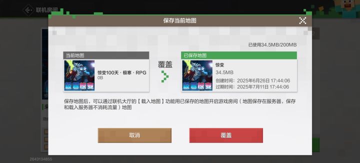 跟朋友玩了一会儿昨天的存档,要继续覆盖存档的时候显示的的是0B→34.5MB,不敢点覆盖怕吞档了
