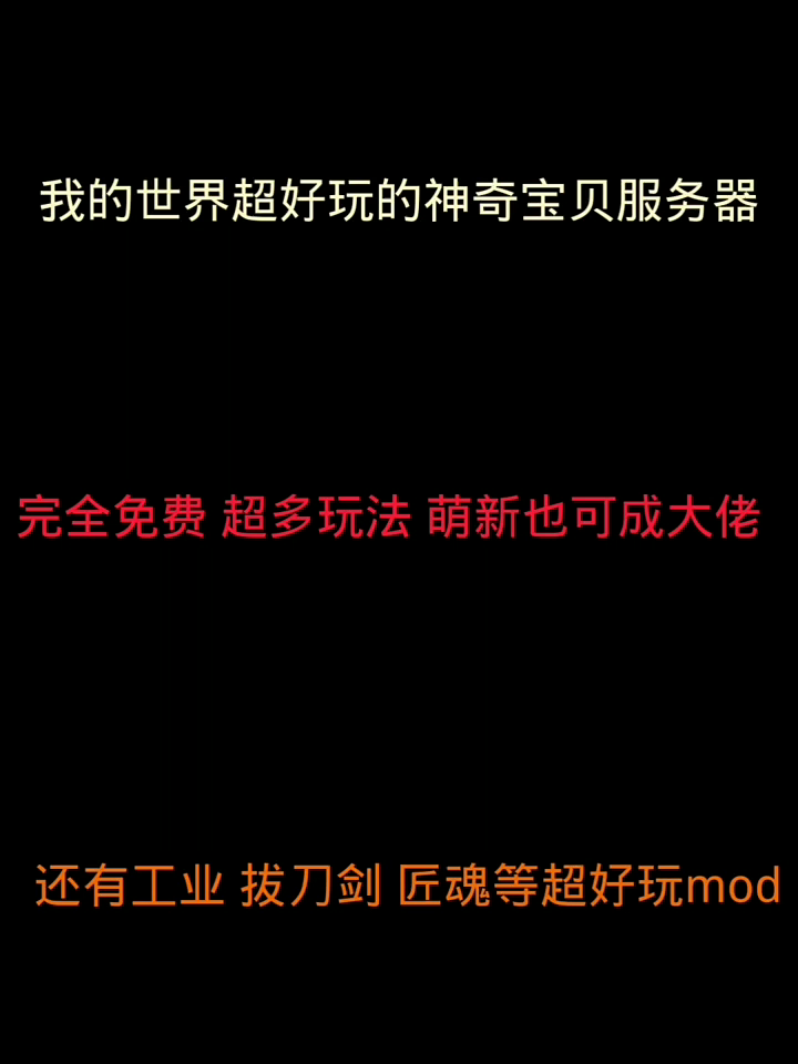★★[仙宇宝可梦]多种精灵皮肤★工会★狩猎场★★服务器名:仙宇宝可梦 m服务器交流:953287183一一一一一一一一一一一一一一一一一一一一一一一一一一一福利:开局神兽三选一手机可玩 专用手机端 让你随时随地都可畅玩无防沉迷一一一一一一一一一一一一一一一一一一一一一一一一一一一玩法:★[ 工会 玩家可以自组★[ 精灵皮肤 超梦 达克莱伊等完善的商店 神秘商店{高级稀有道具}|道具商店[常用宝可梦携带道具]|建筑商店[建筑材料商城]|果球商店[内含自动化果球机]|精灵租用|进化石商店|性格商店VIP礼包等签到系统新手训练场 努力值训练新服开荒!全体玩家同一起跑线!公平公正!严惩作弊等行为!节日还有特多福利服务器可靠肝变强无需氪金Boss超多还有匠魂 拔刀剑 工业等mod欢迎大佬的加入!