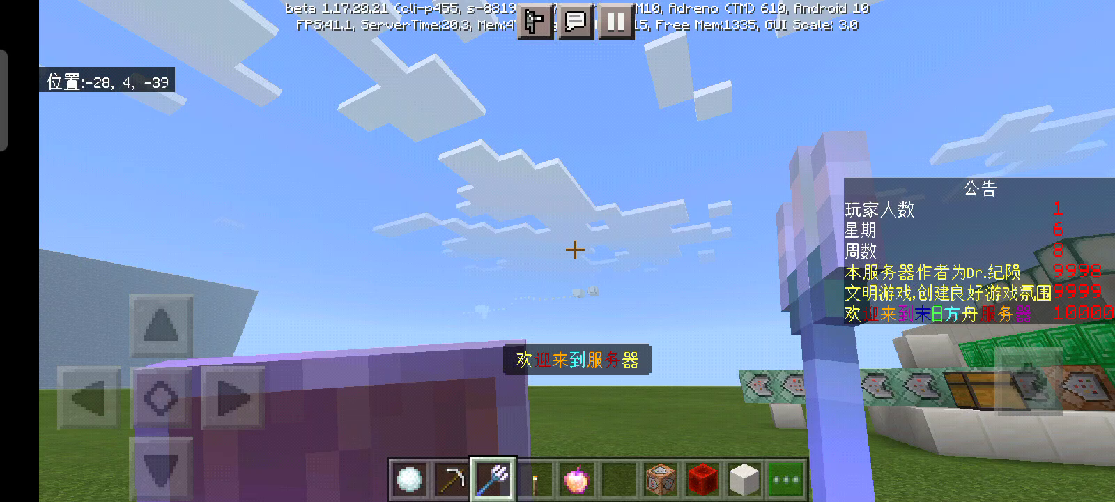 [商会] 更新了一个商会 本破服玩家申请有一个可以玩家间交流货币的地方 于是这里诞生了可以在玩家间转账的功能性建筑 —— 商会(粗制滥造,不要介意。)[海港] 花了不少时间建了一个小码头 [暂时还没有做出船只] [挑战一百层] 这段时间本破服更新了服里玩家一直嚷嚷要着的无尽刷怪塔 (会不断刷出怪物) 在打败怪物的同时可以获得本破服的货币 还会积累荣誉分数,快快来体验吧