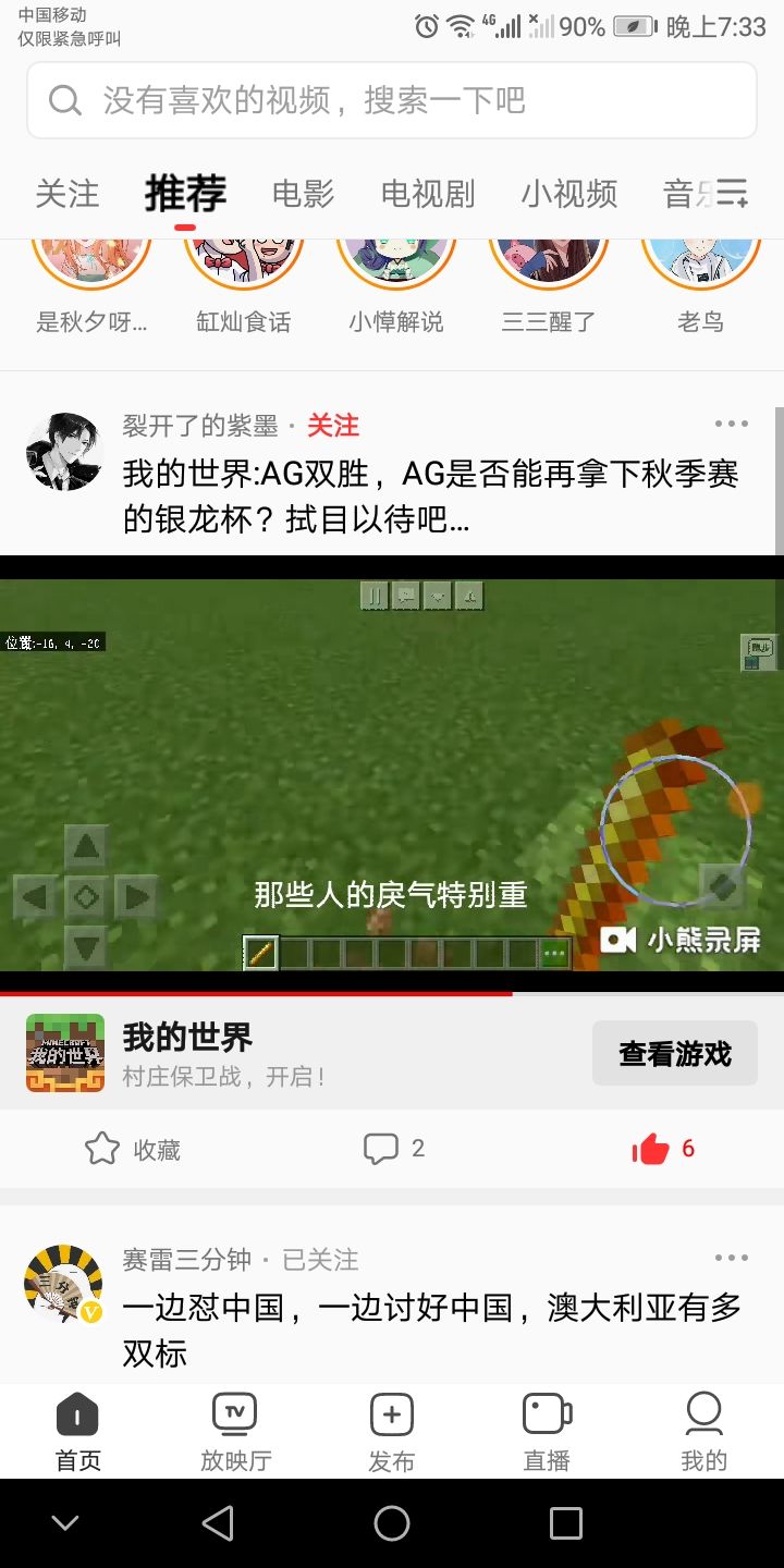 我做出来的视频居然在西瓜上了推荐,刚点开就发现自己的视频在首页,太特么的感人了,托MC的服😄