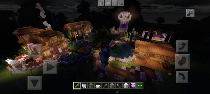 一共大约300X300的地,没有精力做整地形的活,自己也不会指令创世神的活,就让朋友指令平个地,自己苦哈哈的一砖一砖码出来的。技术也不是很高超,没有啥风格想到啥建造啥。