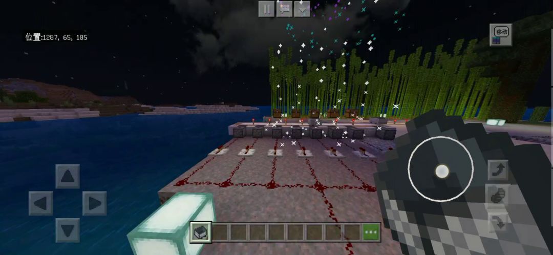 第一次探索红石电路,造了烟花装填发射器,还有根据阳光开闭的桥门,后面我还造了可以在里面锁死的保险门。