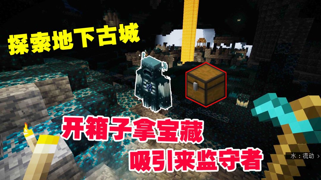 我的世界1.19联机11:探索地下古城,开箱子拿宝藏,吸引来监守者