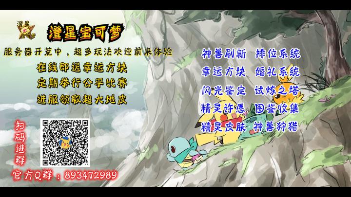 我们是澄星宝可梦服务器,服务器版本1.12.2服务器纯公益,仅接受无条件援助。服务器客户端需要添加QQ群:893472989 下载服务器主打神奇宝贝mod,添加了家具,更多箱子,时装工坊等其他mod服务器插件齐全,功能完备,菜单功能一览服务器所有玩法。服务器包含:超大地皮系统,随机传送,签到系统,累计在线赠送幸运方块,神兽狩猎系统,精灵成就系统,精灵图鉴,神兽祈愿,排位系统,精灵皮肤系统