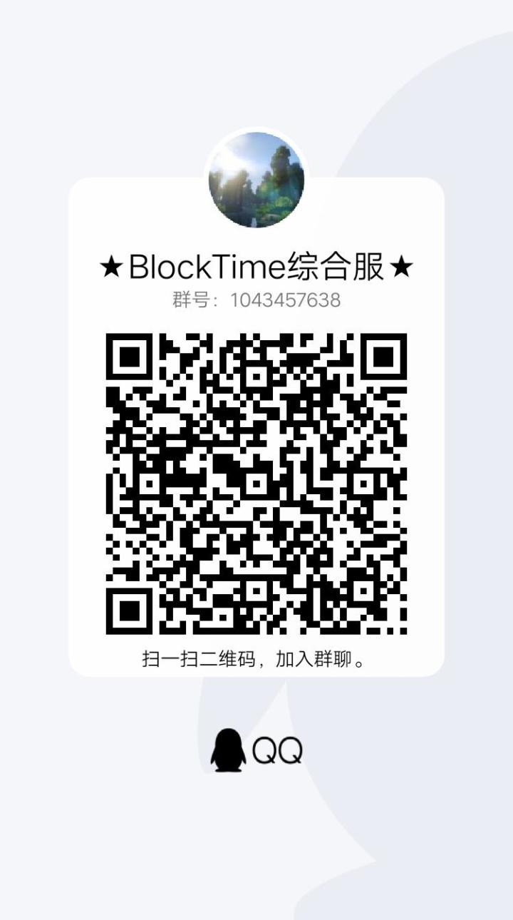 BT生存服在7月14日至7月16日晚开启,定位是长期生存服。游戏设定:坐标开启,死亡掉落,难度困难,其他选项都为默认;服务器版本:基岩版1.17(手机、电脑玩家安装客户端可进)QQ交流群: