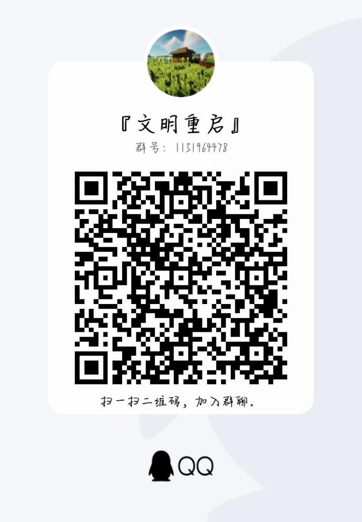 文明重启正如名字一样在mc的世界中重启文明欢迎各位大佬能光临此群一起为重启文明而努力