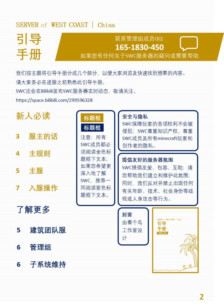 前言:SWC服务器全称Server of West CoastSWC致力于建设一个公平,和睦,美好的be服务器,以玩家为出发点。坚持公益,鼓励建设,支持交友。我们对所有的素质良好的玩家敞开大门,即使你是萌新,或每周只能上线一两个小时,也不必在意。只需要你有一个建设交友的心。一个良好的服务器需要我们共同去努力,请加入我们,与我们一道为服务器添砖加瓦,建设属于我们自己的美好世界!SWC服
