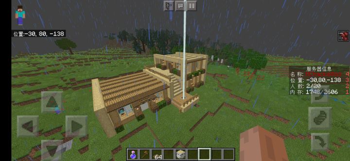 本服务器(不要开挂和熊孩子!最讨厌这种人,害了很多伙伴都走了)为纯生存(种子是-2088013766,在坐标-1314 120 200这个地方特别美!),稍微加强僵尸,禁副手,领地已经做好了(主要是保护玩家财产,还在测试)现在做防刷什么的,纯生存到后面容易瓶颈,所以后期估计会添加一些起床战争,战墙,RPG什么的),服务器当前状态为20人上限,加好友才能玩,一定要改id改,id改,改id!自从被熊之