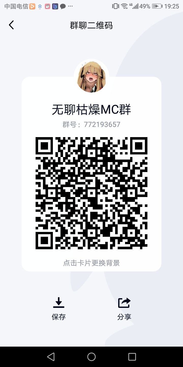 手机电脑都能玩哦[滑稽][玫瑰]这是一个非常普通的服务器希望各位玩家能够玩的愉快!服务器目前处于刚更新周目初期,会逐渐增加更多模组!服务器模组包含:虚无世界3,拔刀剑等等,终极冒险世界,等你来体验[滑稽][玫瑰]服务器采用终极补帧优化,实测辣鸡骁龙4系手机玩不卡,群内有超级详细教程,包教包会!新玩家入服即可获得指令钟表,指令菜单中内置传送中心、系统商城。VIP中心、地皮管理中心等,能够满足大
