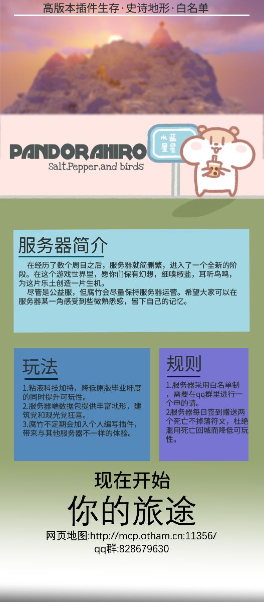 尽管是公益服,但腐竹会尽量保持服务器运营。希望大家可以在服务器某一角感受到些微熟悉感,留下自己的记忆。