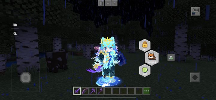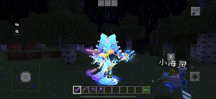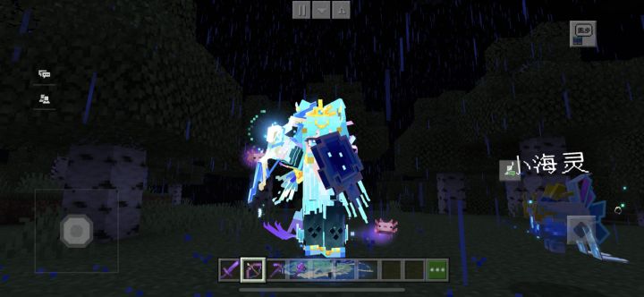 将近四百rmb的钻,爆了两把史诗剑皮肤。没出皮肤,变卖抽奖多余的再加上很久以前抽奖遗留的货币,才兑换出来。如果不加我的好友组件,变身会有bug,换手持物品会自动变身回去,不过装了我的好友组件就没bug了。 头部很细节,头上不知道鱼鳍还是鳞片,还有彩色的龙角,会有环境反光,扭头的话五光十色非常好看。 三叉戟是剑皮肤很炫酷。 脚下带有水浪特效,和其他脚印光环可以同时存在互不影响。