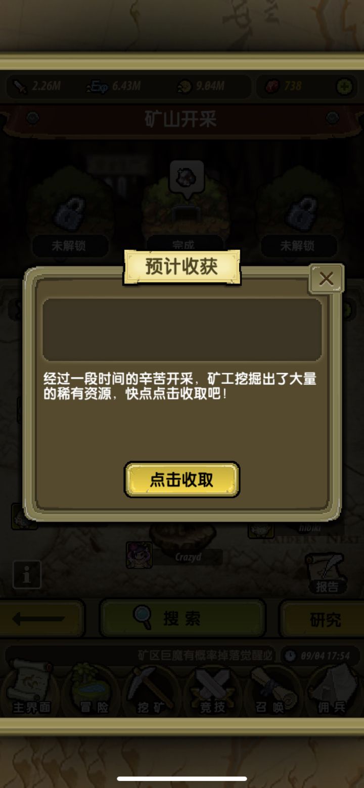 ios矿山还是卡,而且点开退出之后,点别的挖矿啥的也会卡卡的,不是不能玩,但手感和体验不是很好