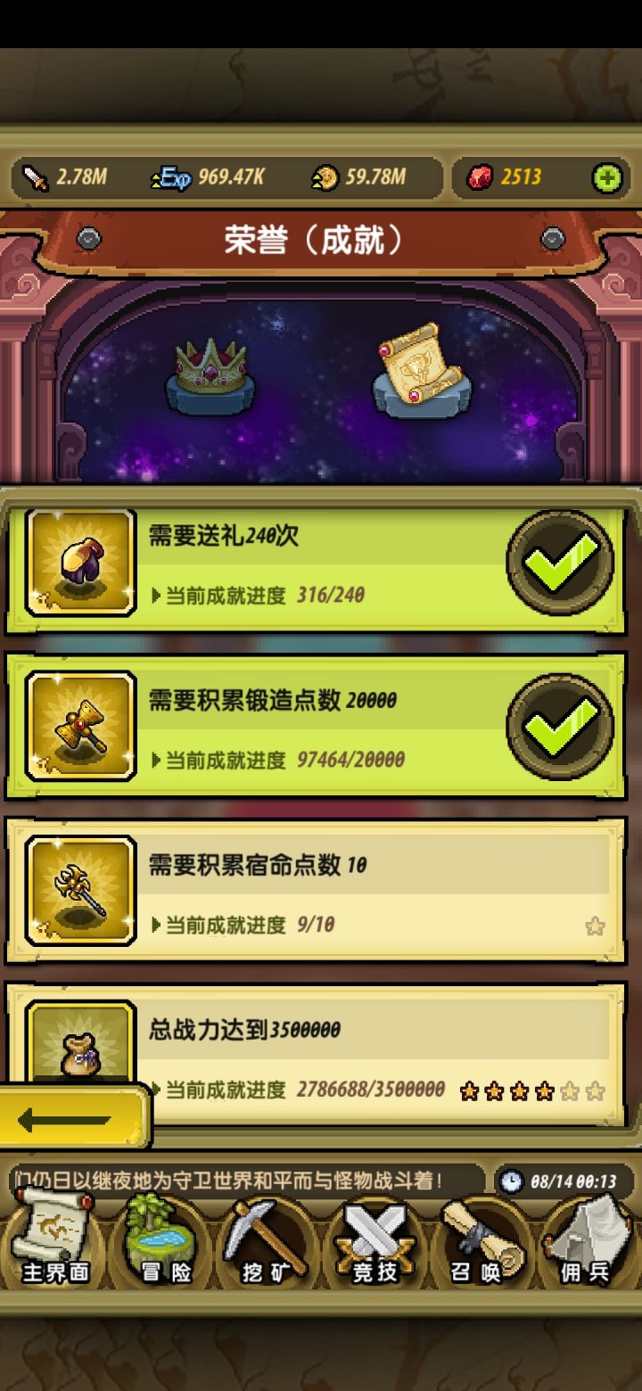 当你在遇到矿坑奇遇是要挖掘的时候,若你的挖掘次数不足20,那么就算慢慢恢复到20次他也是挖掘次数不足,只有用矿石包才好用。而且……我的矿镐等级卡在了9级,只能攒55次次数 发现真心不够用。点进挖矿界面会有轻微卡顿。有时挖完的矿资源他会停留一会,若继续挖会显示先收集资源